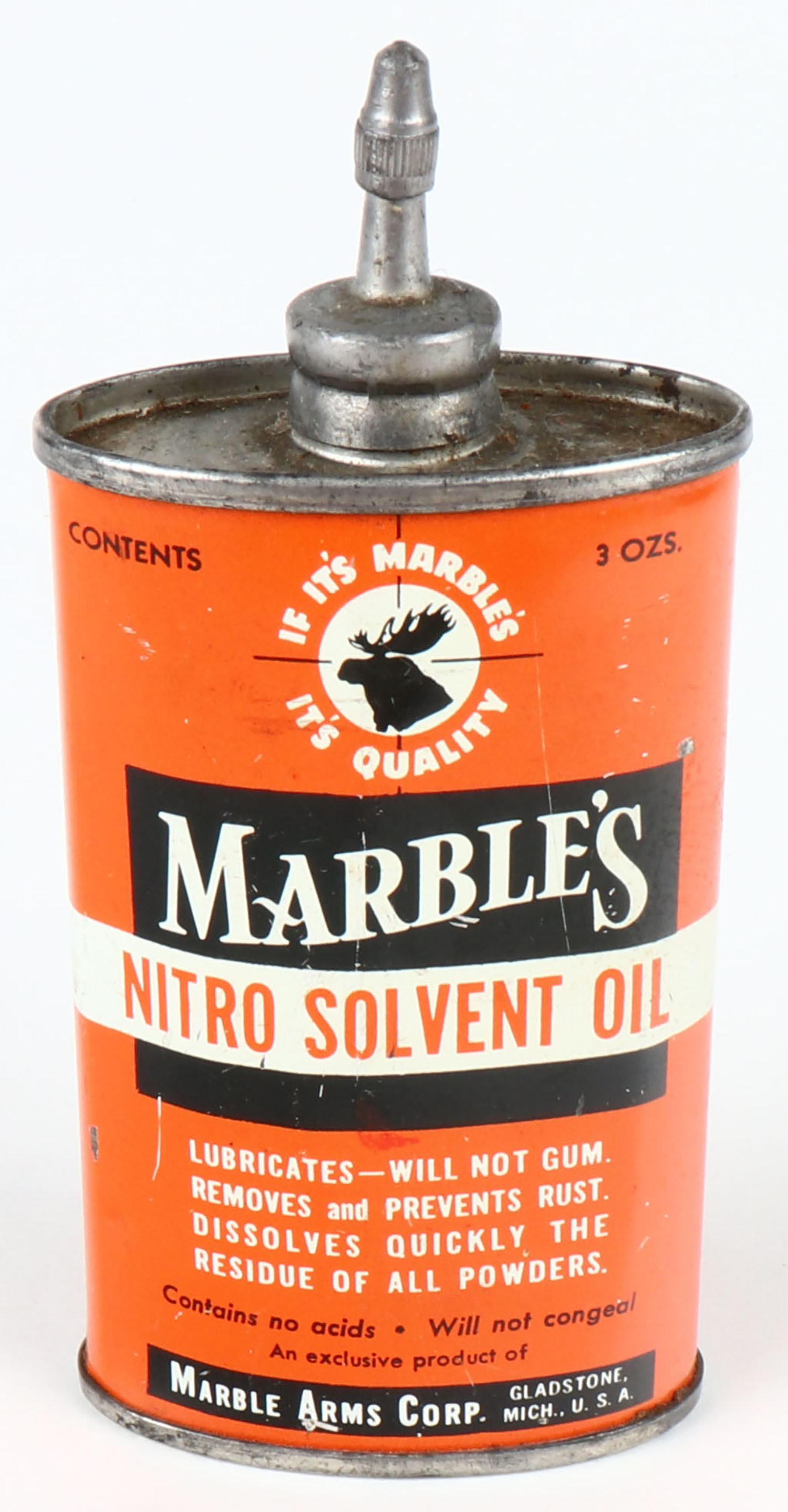RARE! Marbles oil, tin, lead spout and cap, bright and clean, partial nearly FULL. Grade: Excellent - Value: 40 to 80
