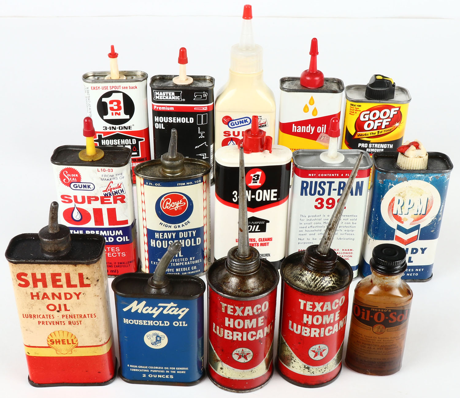 Lot of oil tins, all partail. Grade: Very Good ++ - Value: 20 to 100