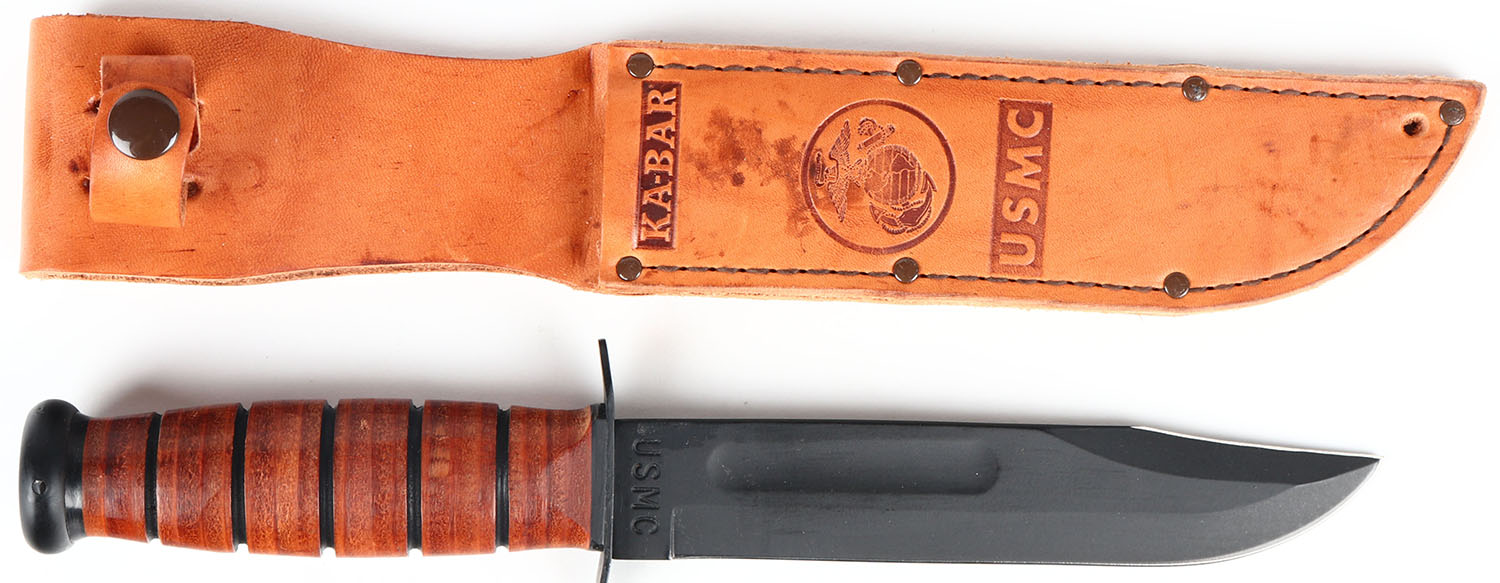 USMC KaBar fixed blade knife, original leather sheath. Grade: Excellent ++ - Value: 50 to 100