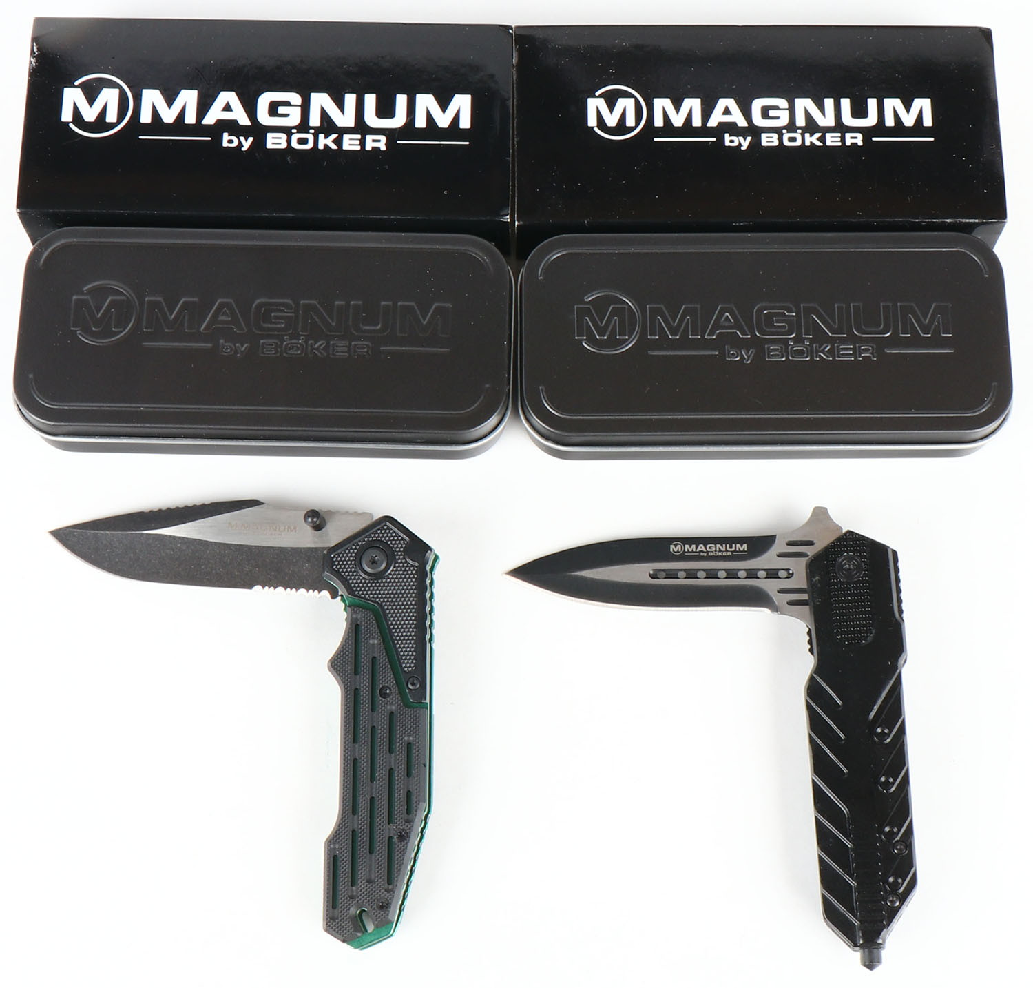 Lot of 2 Boker Magnum folding knives, in box. Grade: Excellent ++ - Value: 20 to 60