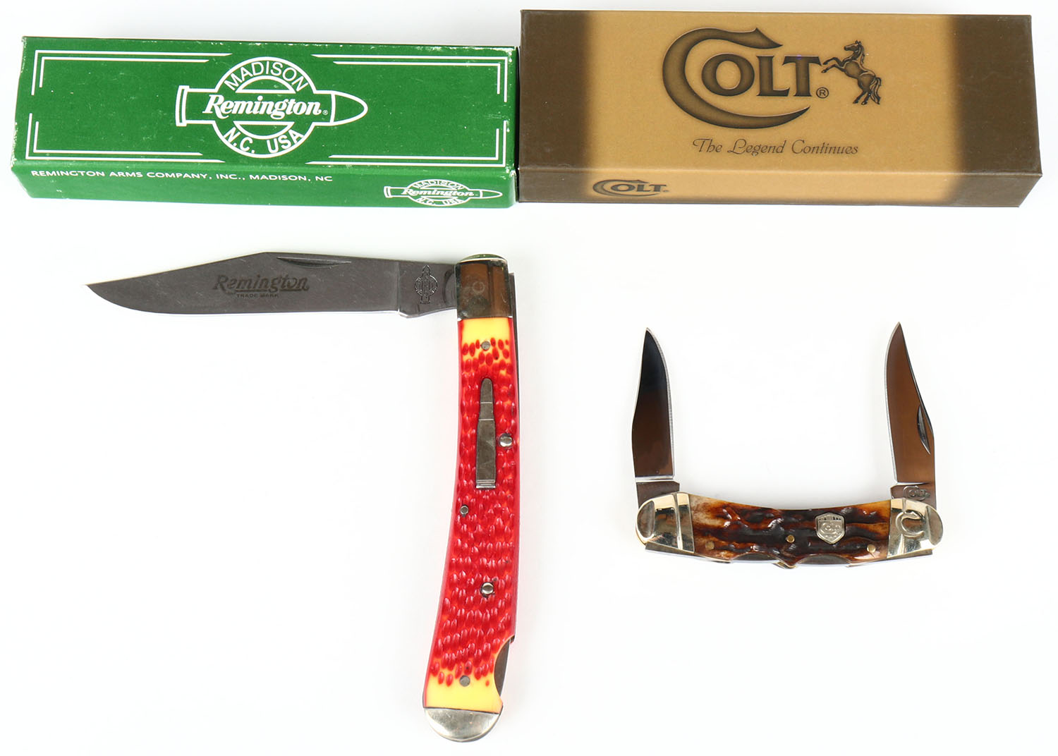 Lot of 2 Remington and Colt folding knife and has original box! Grade: Excellent ++ - Value: 20 to 80
