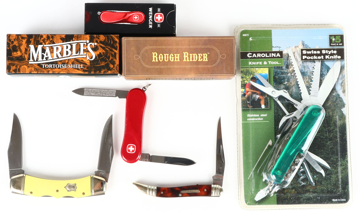 Lot of 4 folding knives and has original box! Grade: Excellent ++ - Value: 16 to 50