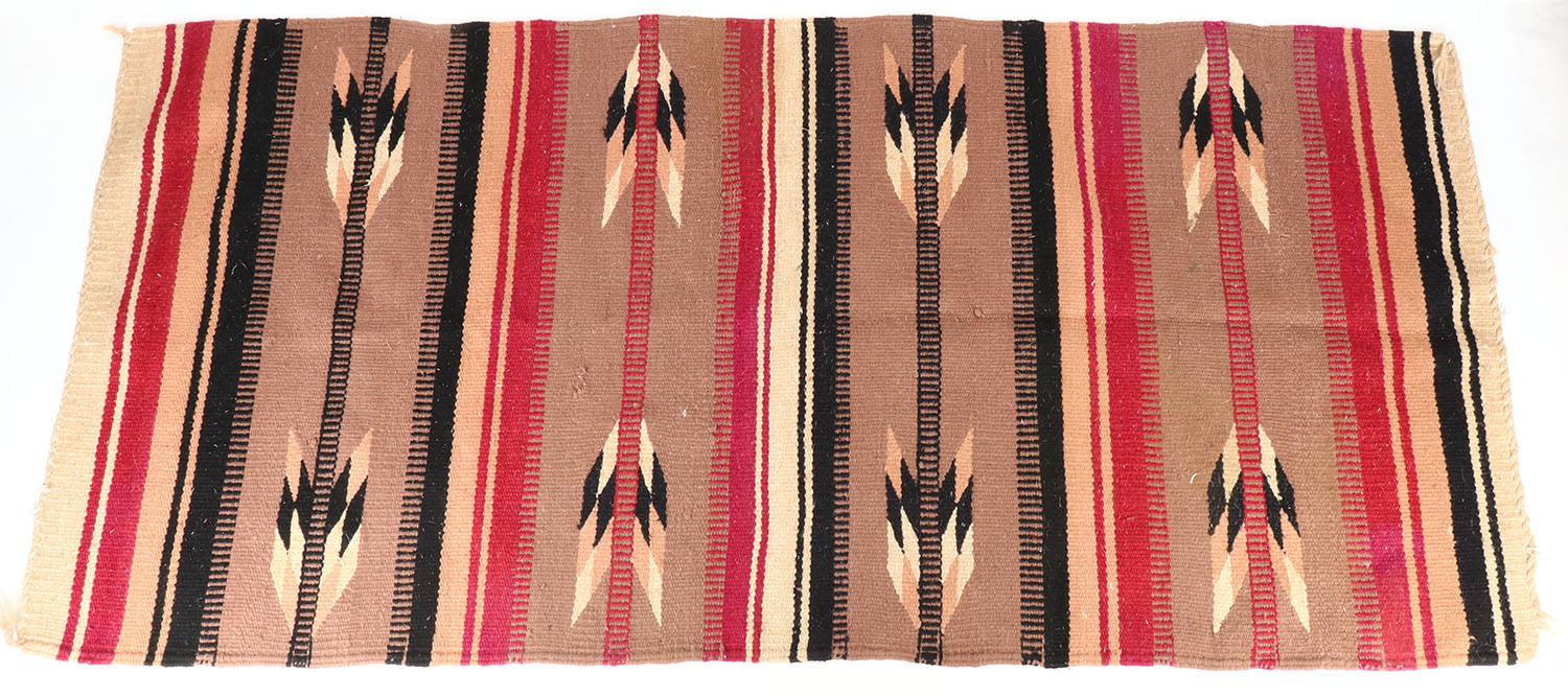 Navaho hand woven Native American blanket with arrow design, circa 1910, 69 12'' x 32'', very nice, great colors. Grade: Excellent - Value: 200 to 800