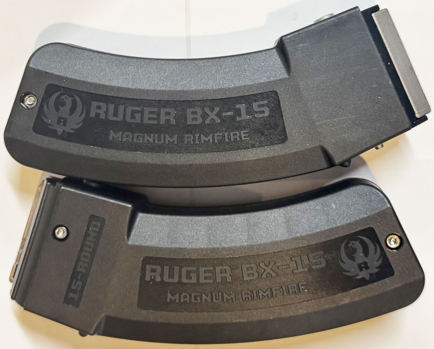 Lot of 2 Ruger BX-15 magnum rim-fire, 15 rd mags for 17 HMR/ 22 HMR cal rifles. Grade: Excellent ++ - Value: 20 to 60