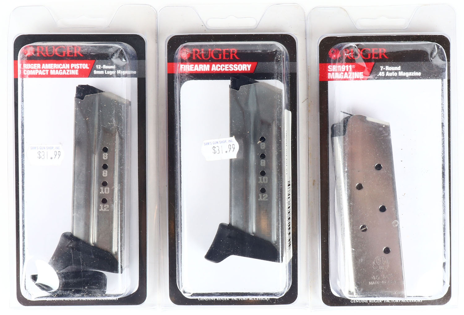 Lot of 3 Ruger 9mm luger mags. Grade: Excellent ++ - Value: 16 to 50