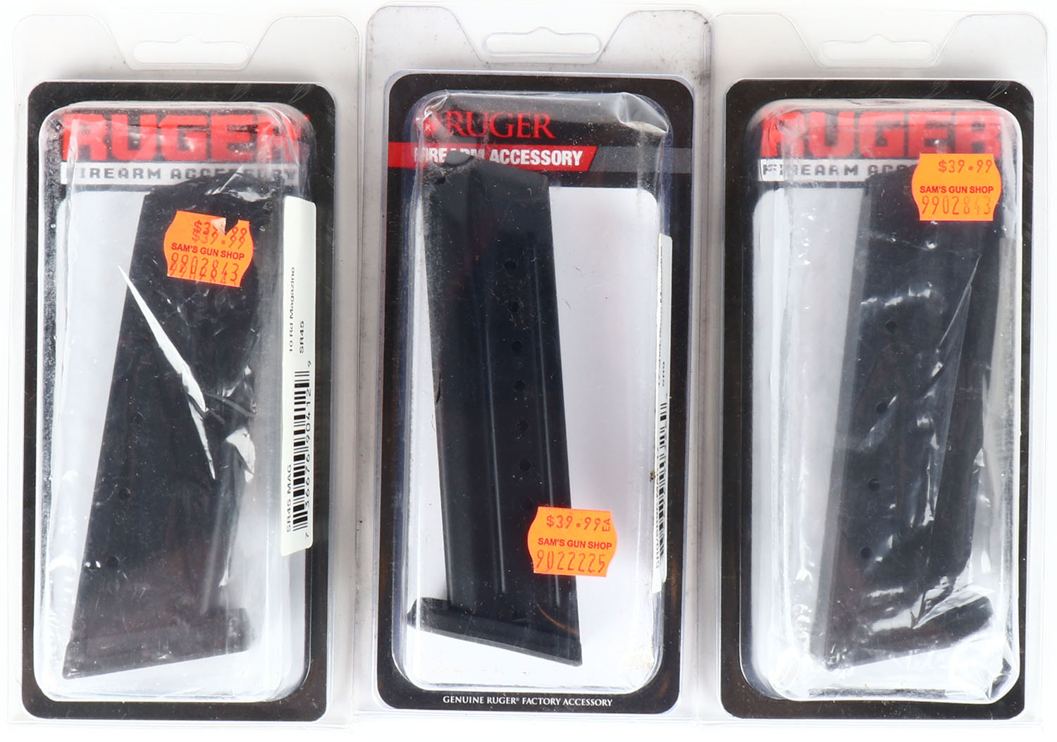 Lot of 3 Ruger pistol mags, various calibers. Grade: Excellent ++ - Value: 16 to 50