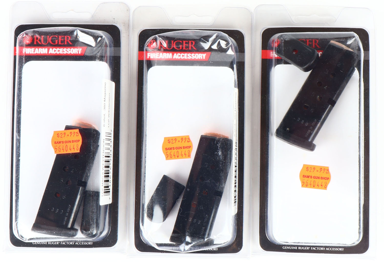Lot of 3 Ruger pistol mags, 6 rd .380 cal. Grade: Excellent ++ - Value: 16 to 50
