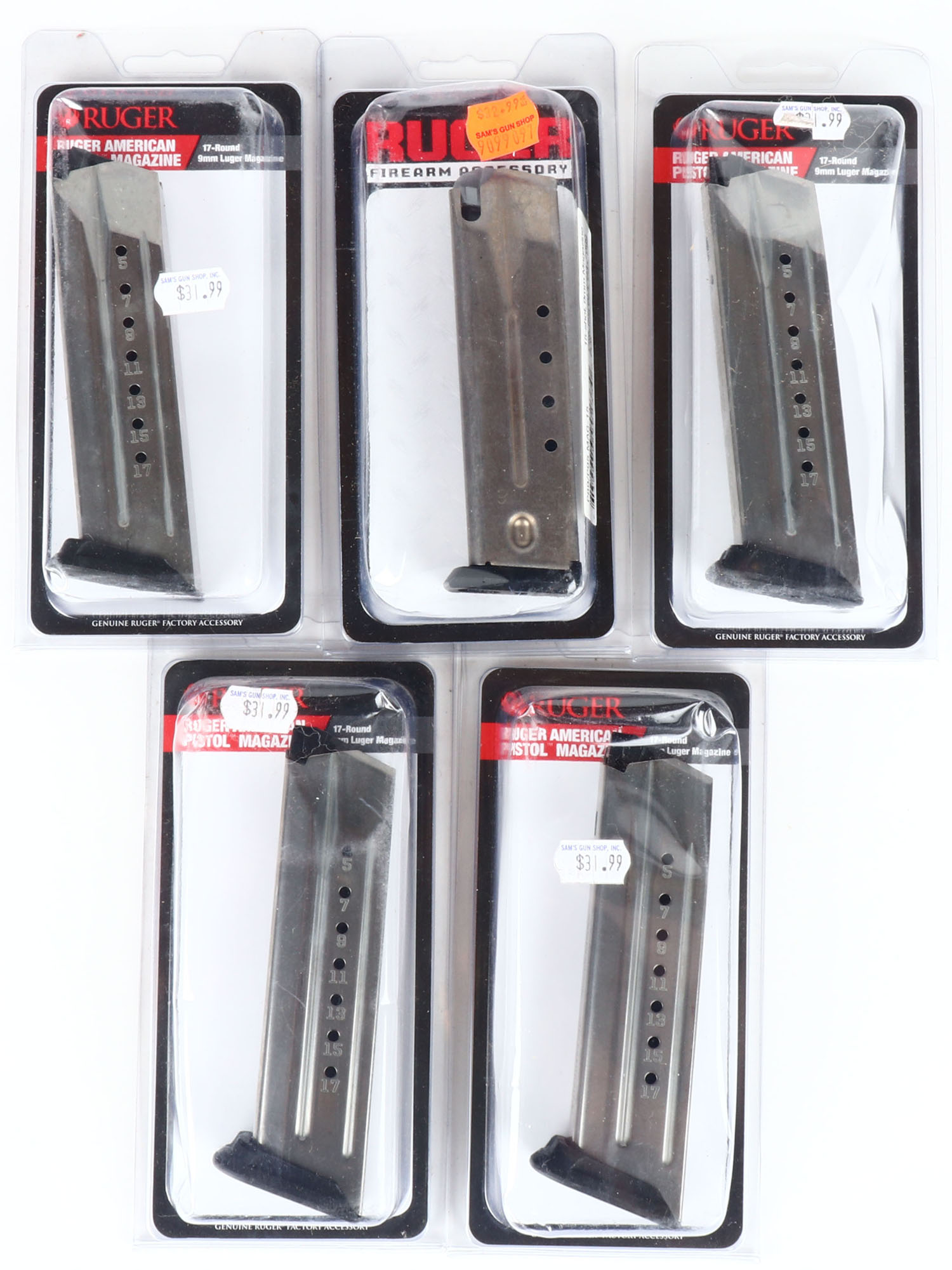 Lot of 5 Ruger pistol mags, 17 rd 9mm cal. Grade: Excellent ++ - Value: 20 to 60