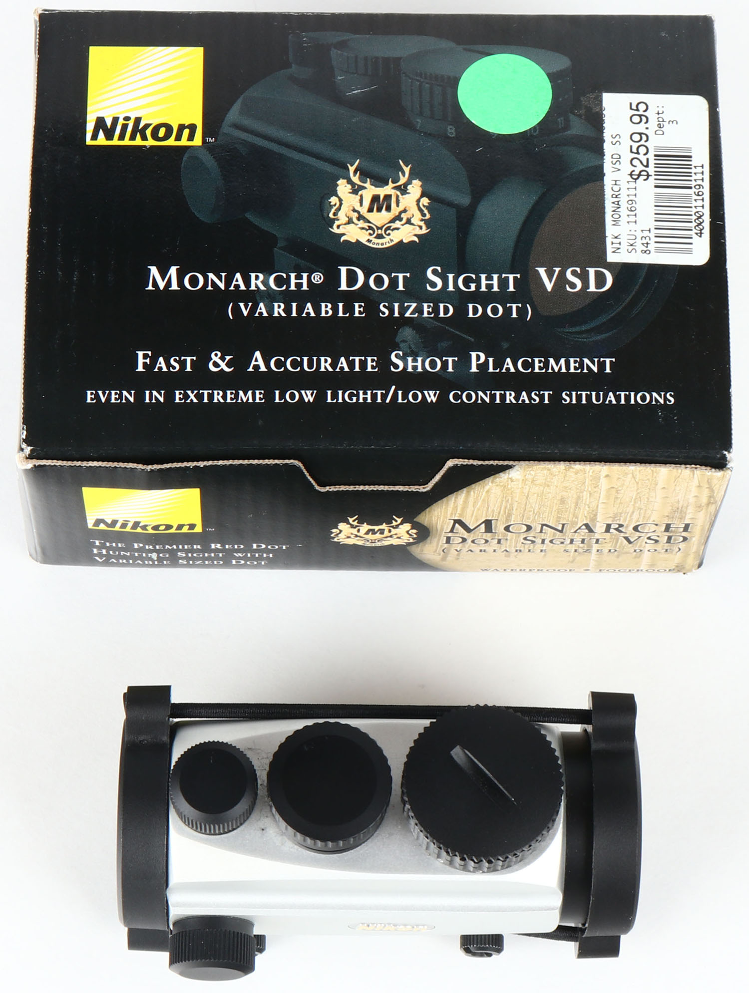 Nikon Monarch dot sight, 1x30s VSD, in box. Grade: Excellent - Value: 100 to 300