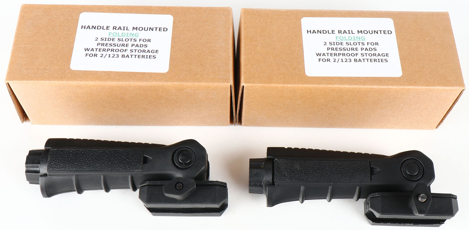 Lot of 2 handle rail mounted folding, in box. Grade: Excellent - Value: 10 to 60