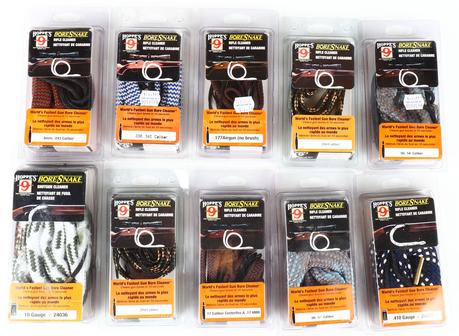 Large lot of Hoppes Bore snake various calibers. Grade: MINT - Value: 40 to 100