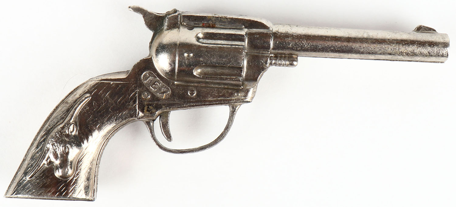 Early Hubley tex Cast cap gun steer grips. Grdae: Excellent - Value: 20 to 60