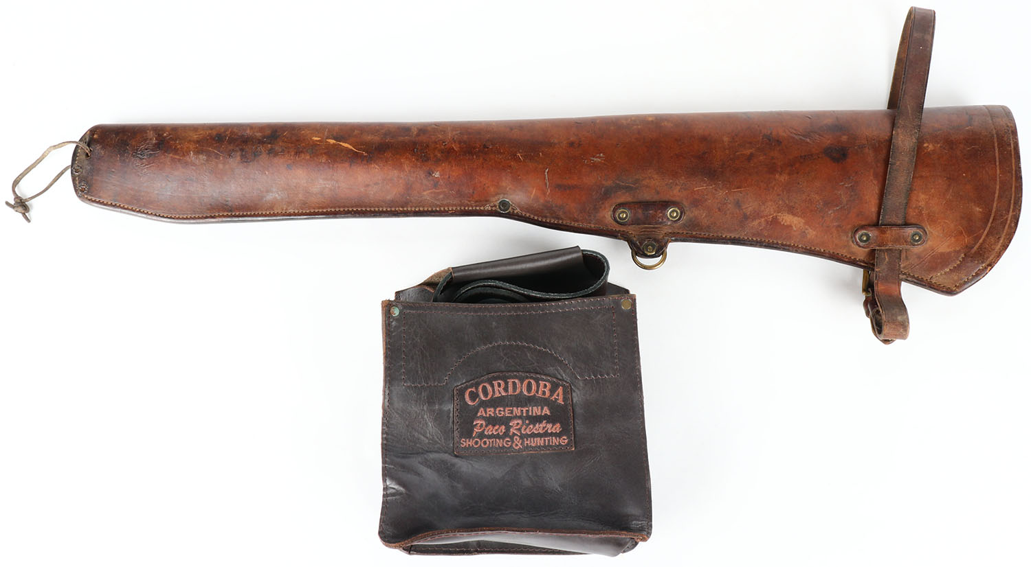 Lot of 2, leather ammo bag and 33'' OAL WH McM co SM6 leather ifle scabbard. Grade: Excellent - Value: 30 to 90