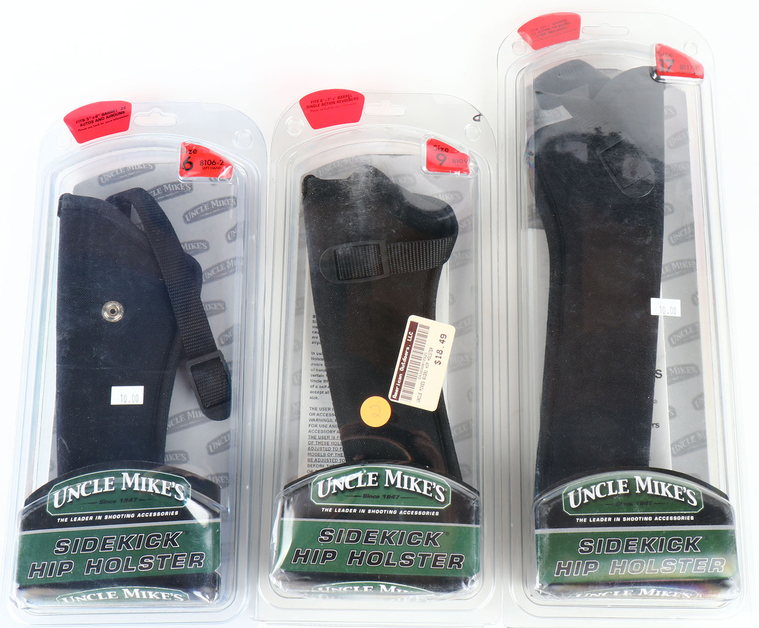 Lot of 3 Uncle Mikes pistol holster size 36 and 4(2). Grade: Excellent - Value: 4 to 60