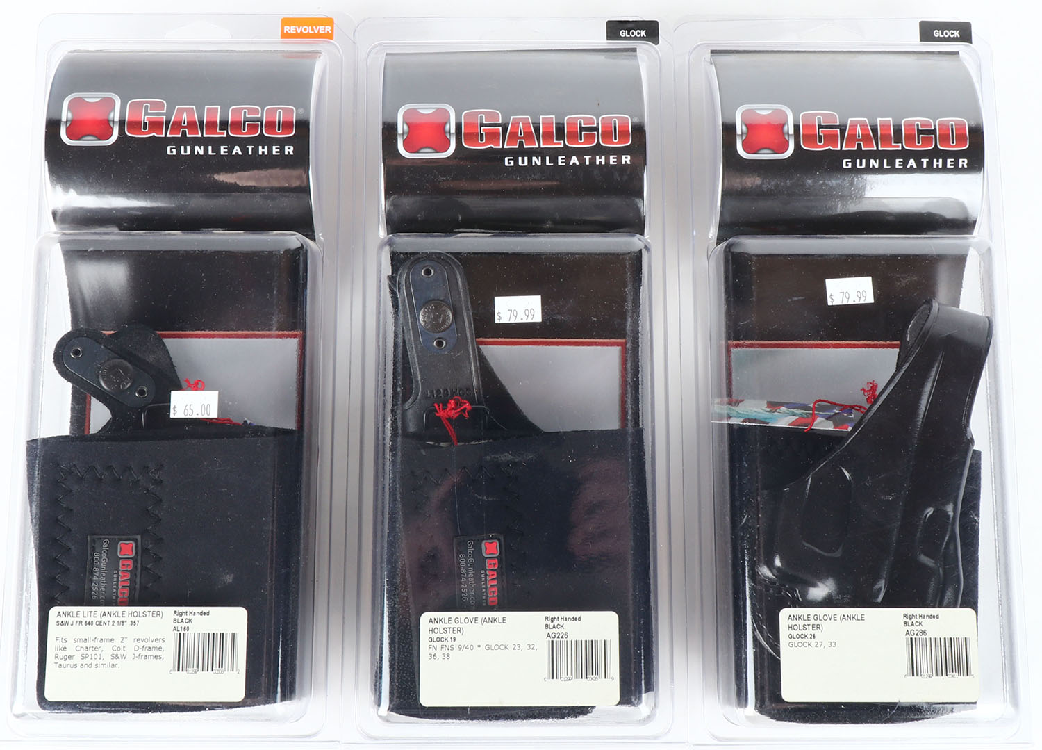 Lot of 3 Glaco pistol holster, fits glocks and revovlers. Grade: Excellent ++ - Value: 50 to 200