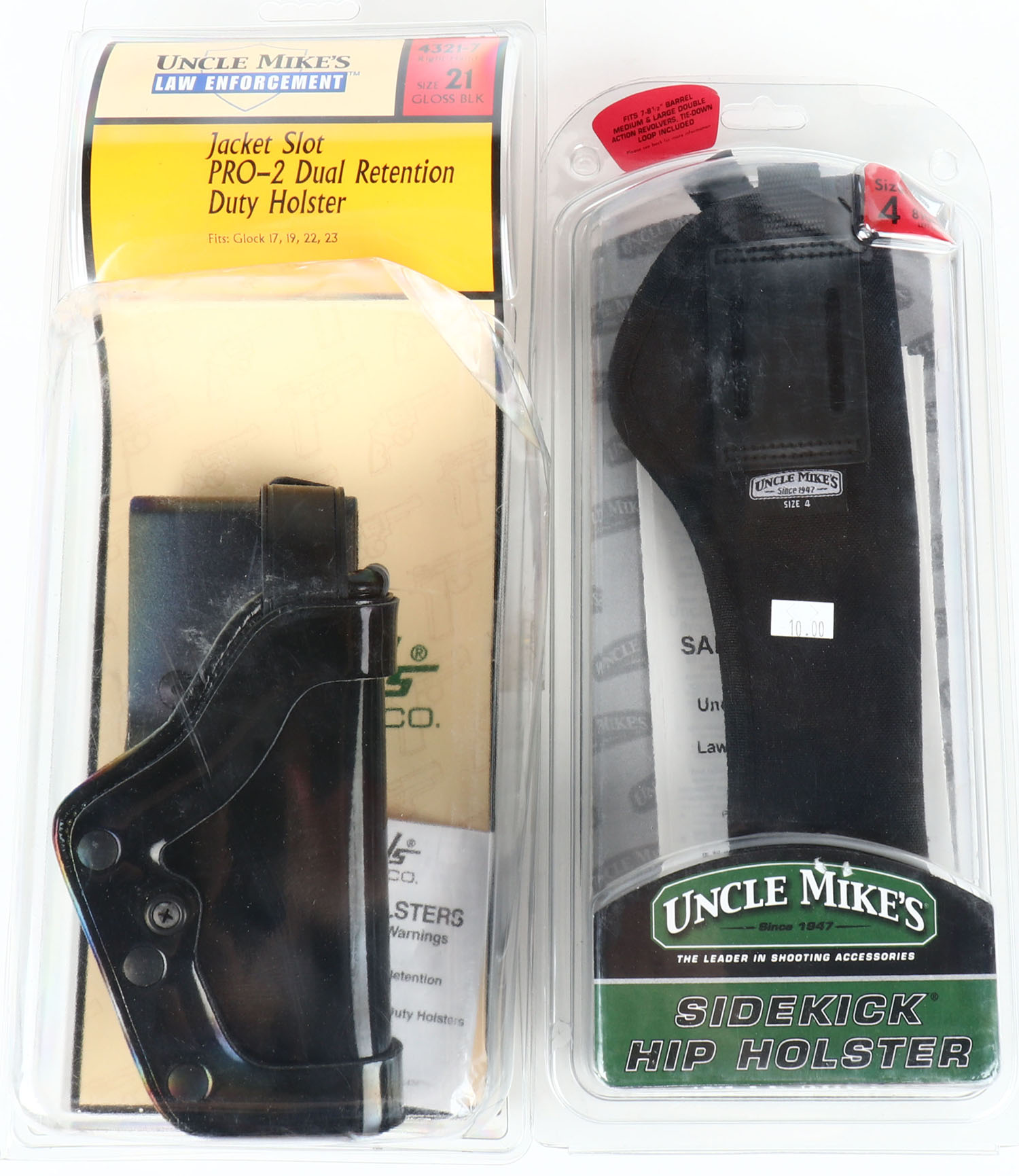 Lot of 2 Uncle mikes pistol holster, size 21 and 4. Grade: Excellent ++ - Value: 10 to 90