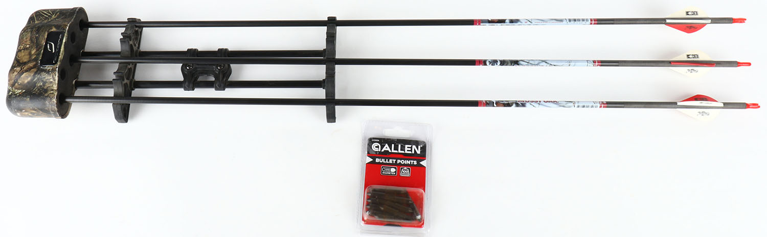 Mossy oak arrow headsm 3 in quizer, Allen Bullet points box. Grade: Excellent - Value: 4 to 50