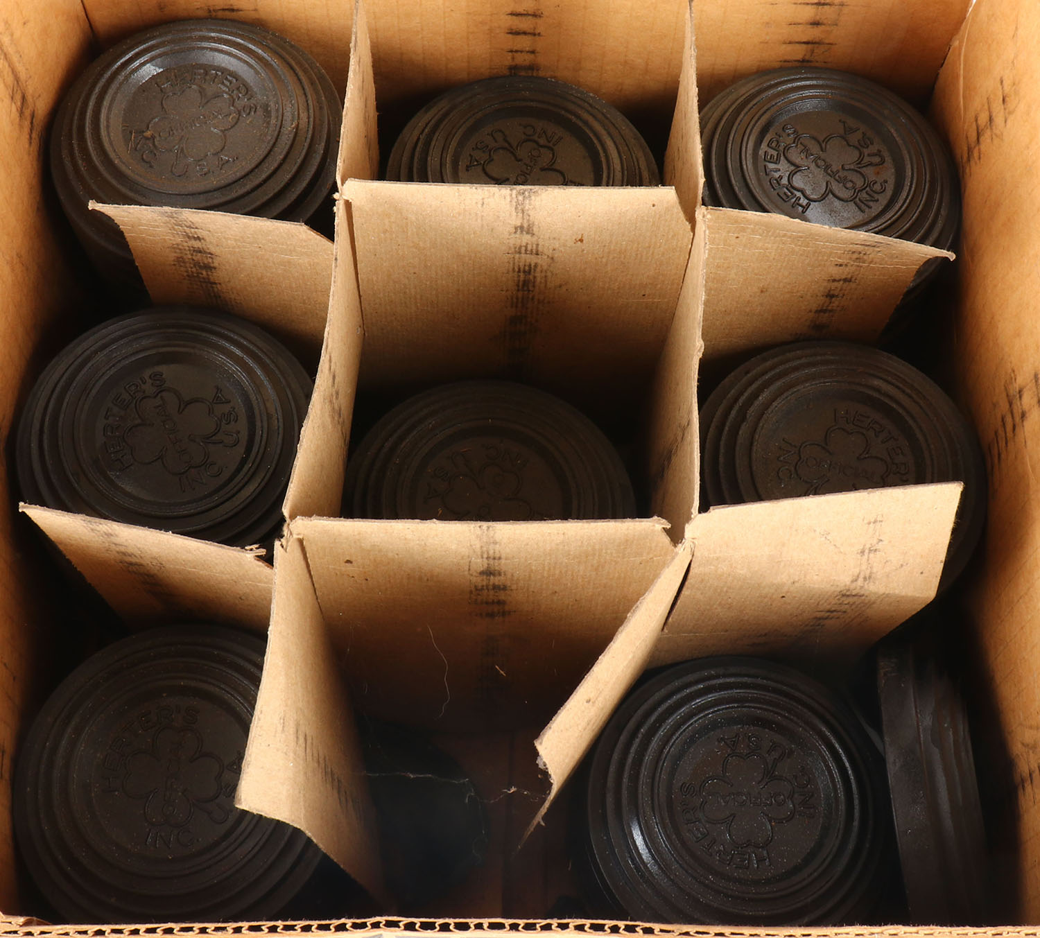 Case of Herters clay pigeosn, about half Full, all intact. Grade: Excellent - Value: 10 to 100