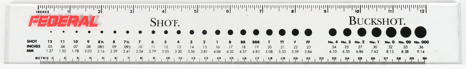 Federal ruler with shot sizes. Grade: Excellent - Value: 2 to 20