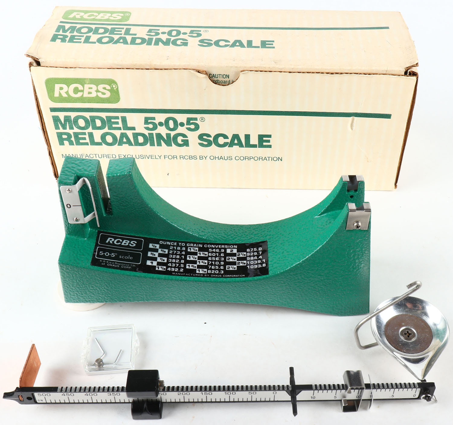 RCBS Model 505 reloading scale, in box., all solid. Grade: Excellent - Value: 20 to 60