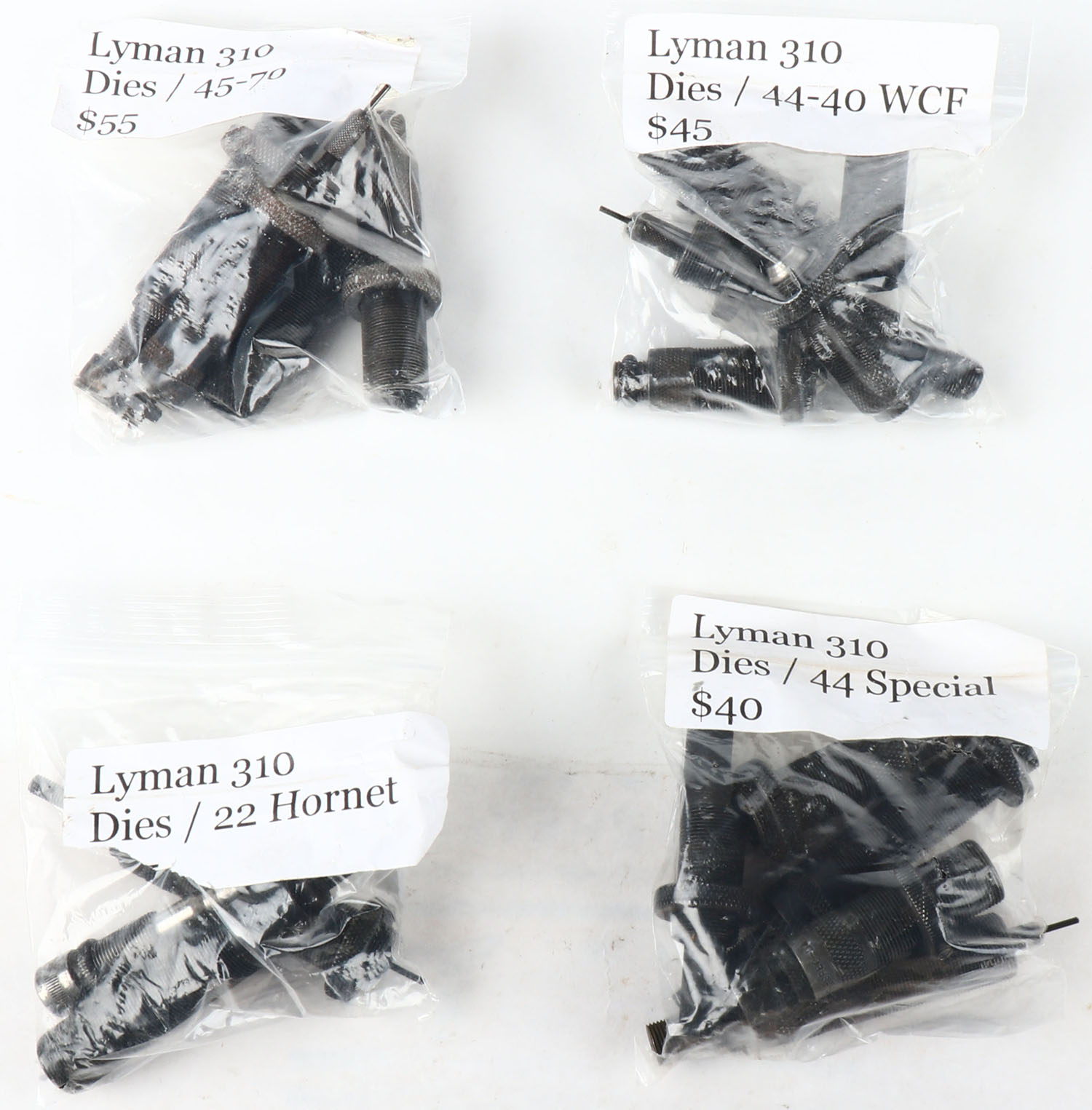 Lot of Lyman reloading dies, 45-70, 22 hornet, 44-40 wcf and 44 special. Grade: Excellent ++ - Value: 50 to 100