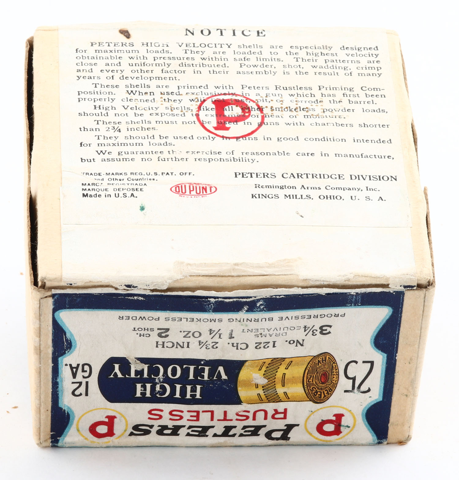 | Peters Cart. Co., Blue Bill, 12ga., 2pc., FULL, shot size 2 CH, ...