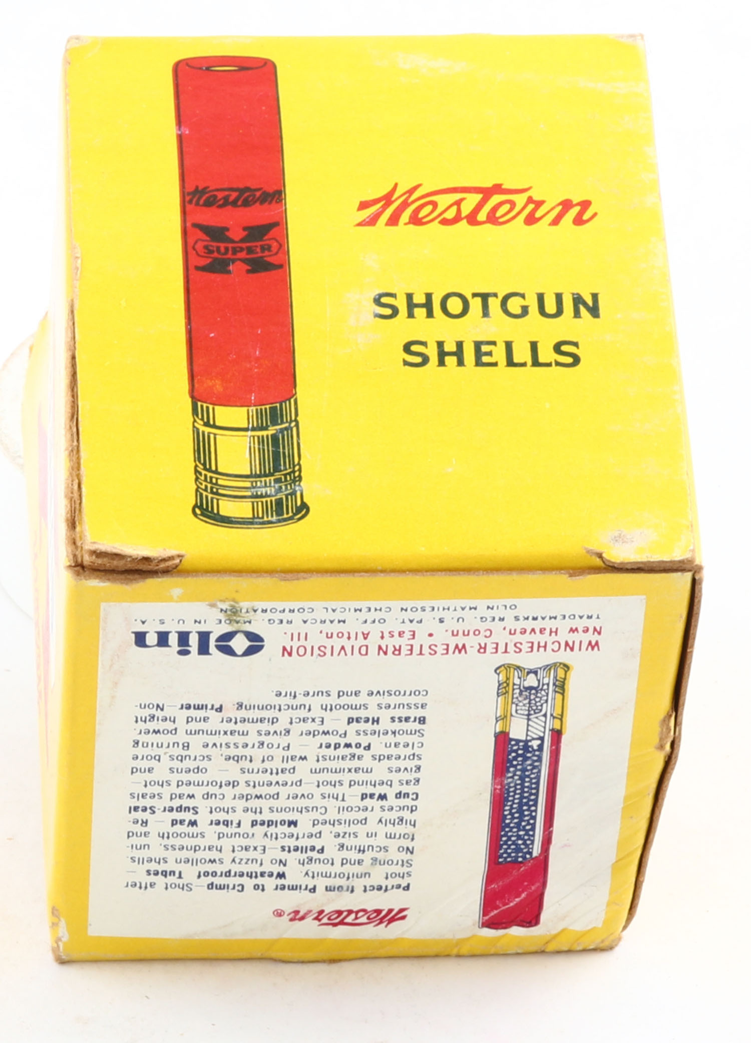 Western, Super X, 410ga., 1pc., Full, shot size 6, 3'', multi-colored box, box has some scuffing, paper shells are excellent. Grade: Very Good ++ - Value: 10 to 40