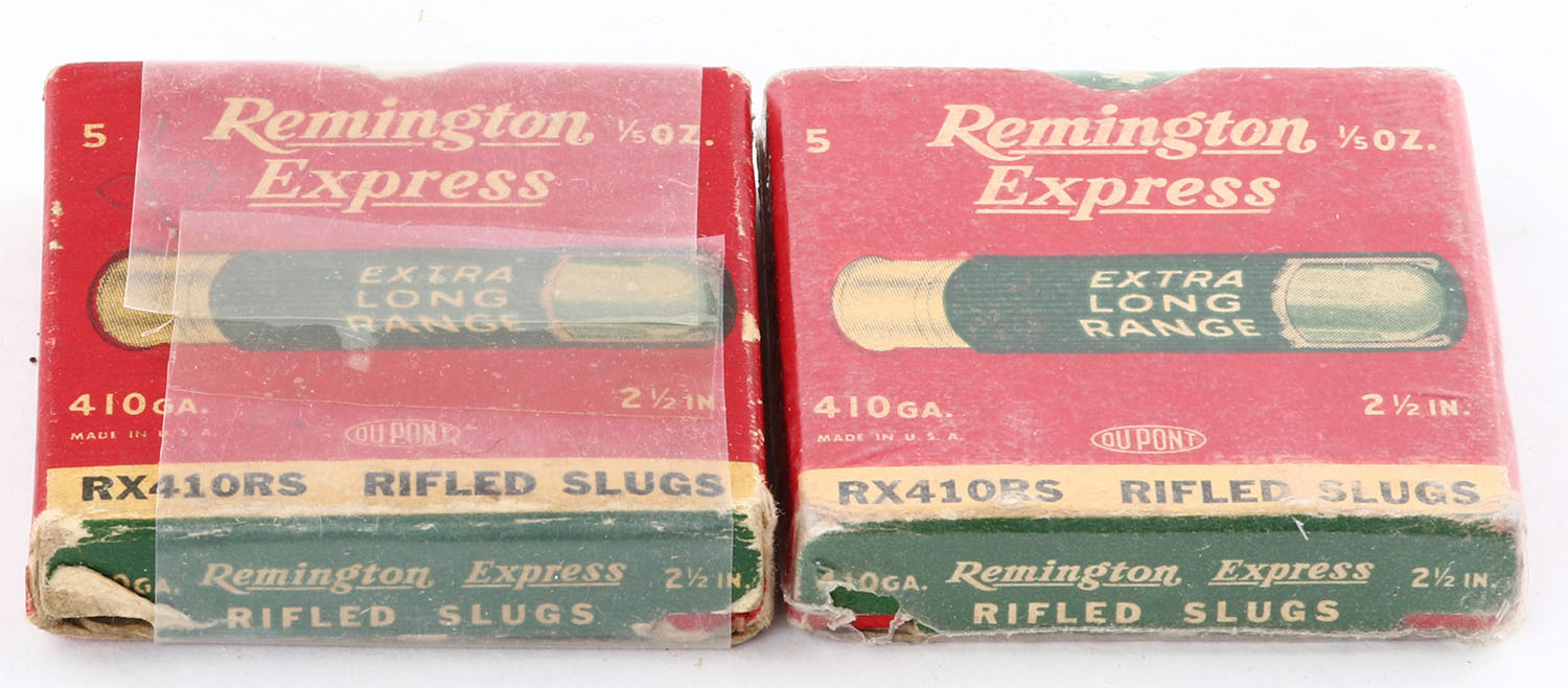 Lot of 2 Remington, 410ga., 1pc., Appears Full, 2 1/2'', shot size Rifled Slugs, multi-colored boxes. Grade: Very Good - Value: 10 to 30