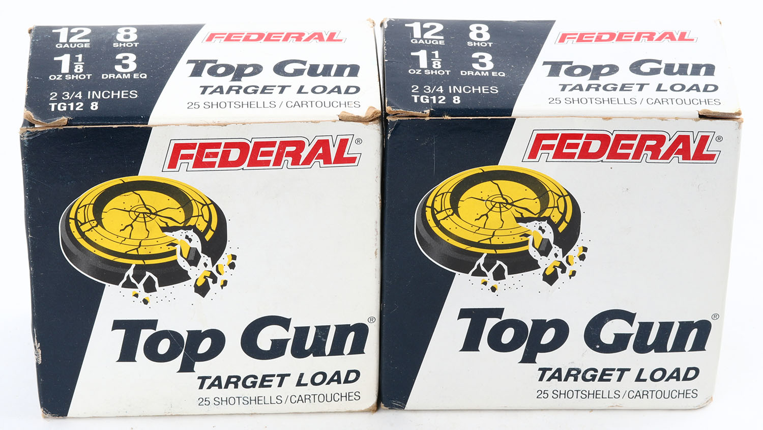 Lot of 2 Federal, 12ga., 1pc., Appears Full, shot size 8, multi-colored box. Grade: Excellent - Value: 10 to 40
