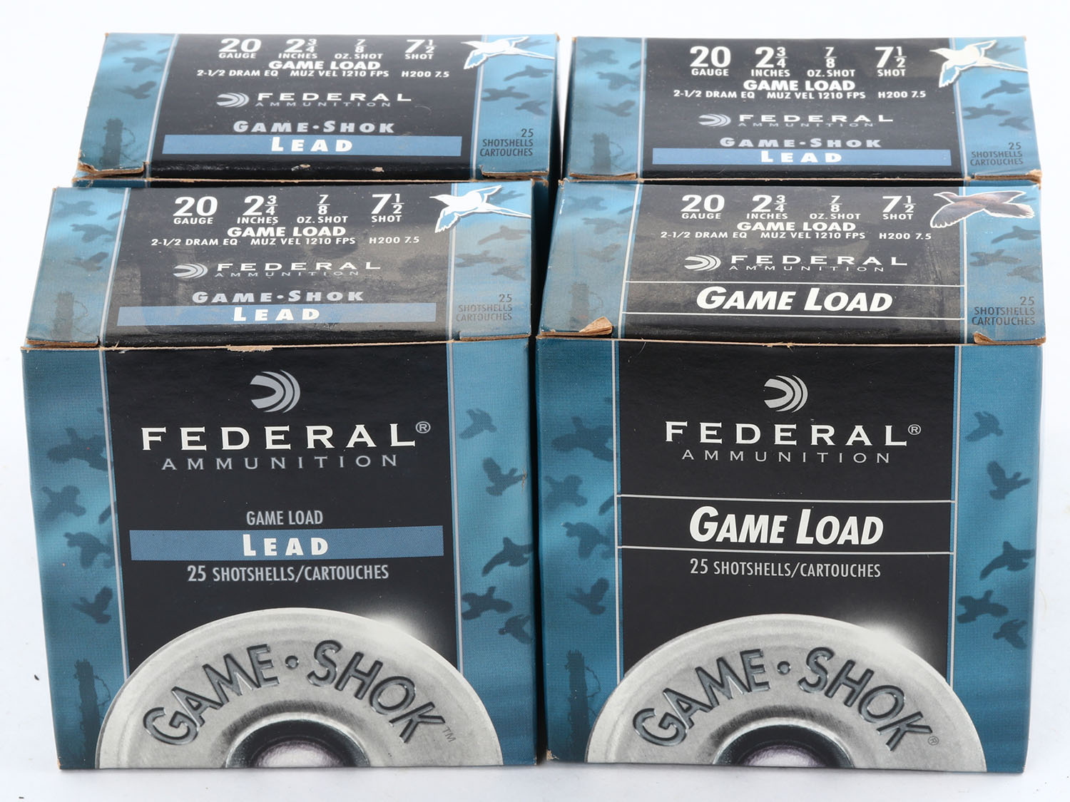 | Lot of 4, Federal, 20ga., shot size 7 1/2, Appears Full, Shotshe...