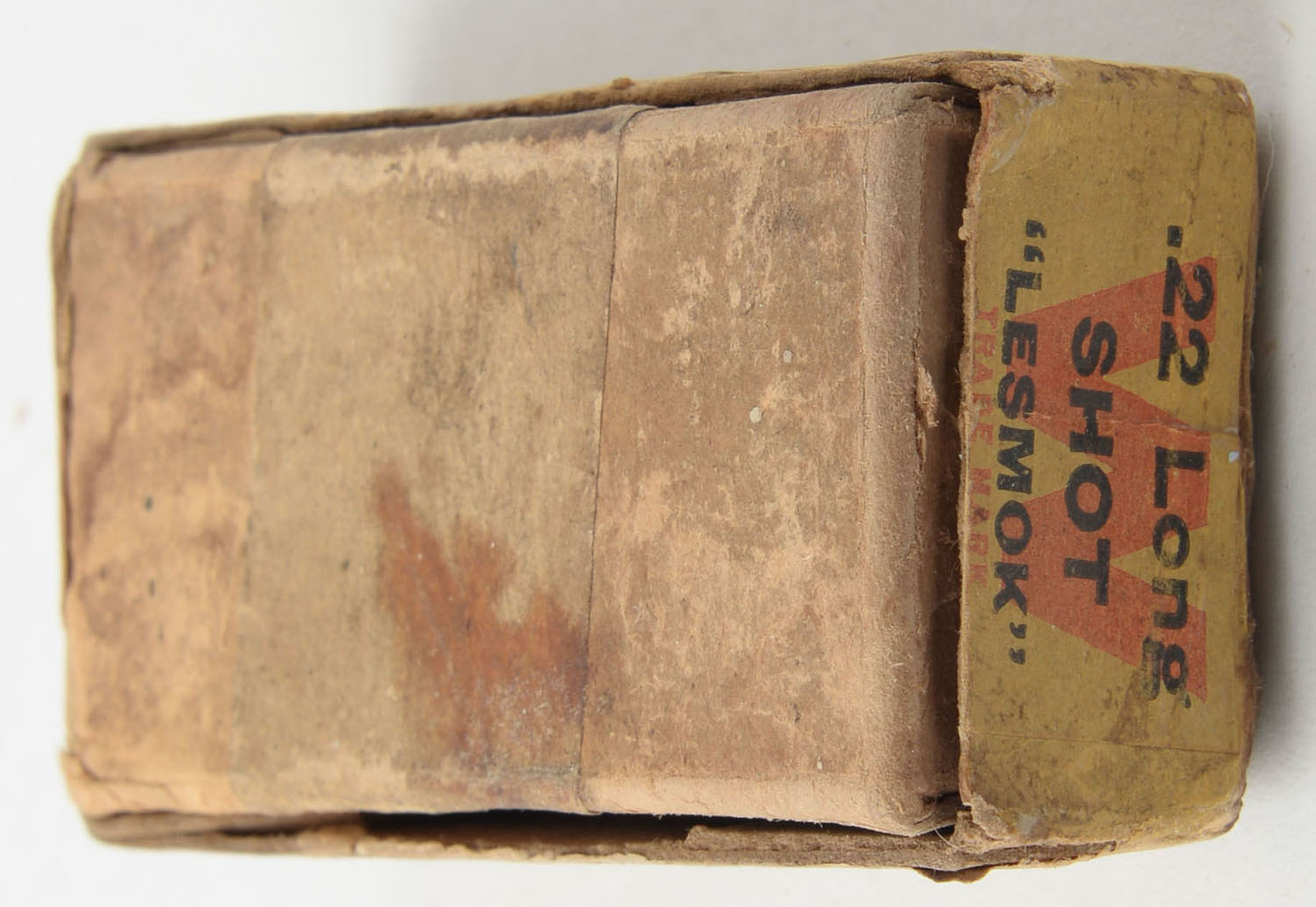 Winchester, Rifle Cartridges, .22 Long Shot, RR: WRA-101 LS-12b (except side sealing codes are 147 & 12-20), Partial 17rds. 2pc. Buff box with green top & yellow side sealing labels, box is solid with fair to good color, age soiling, shelf wear, some edge & corner wear, labels are intact, ammo is very good. Grade: Good ++ - Value: 40 to 60