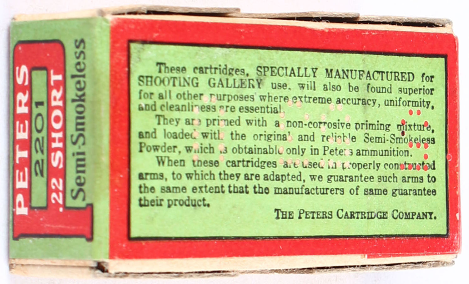| Peters, R.F. Rifle Cartridges, .22 Short, Semi-Smokeless Powder,...