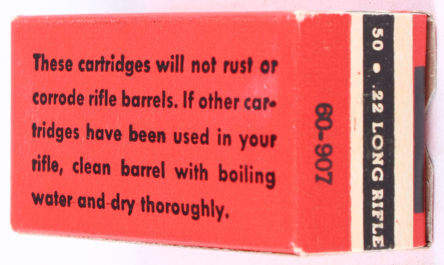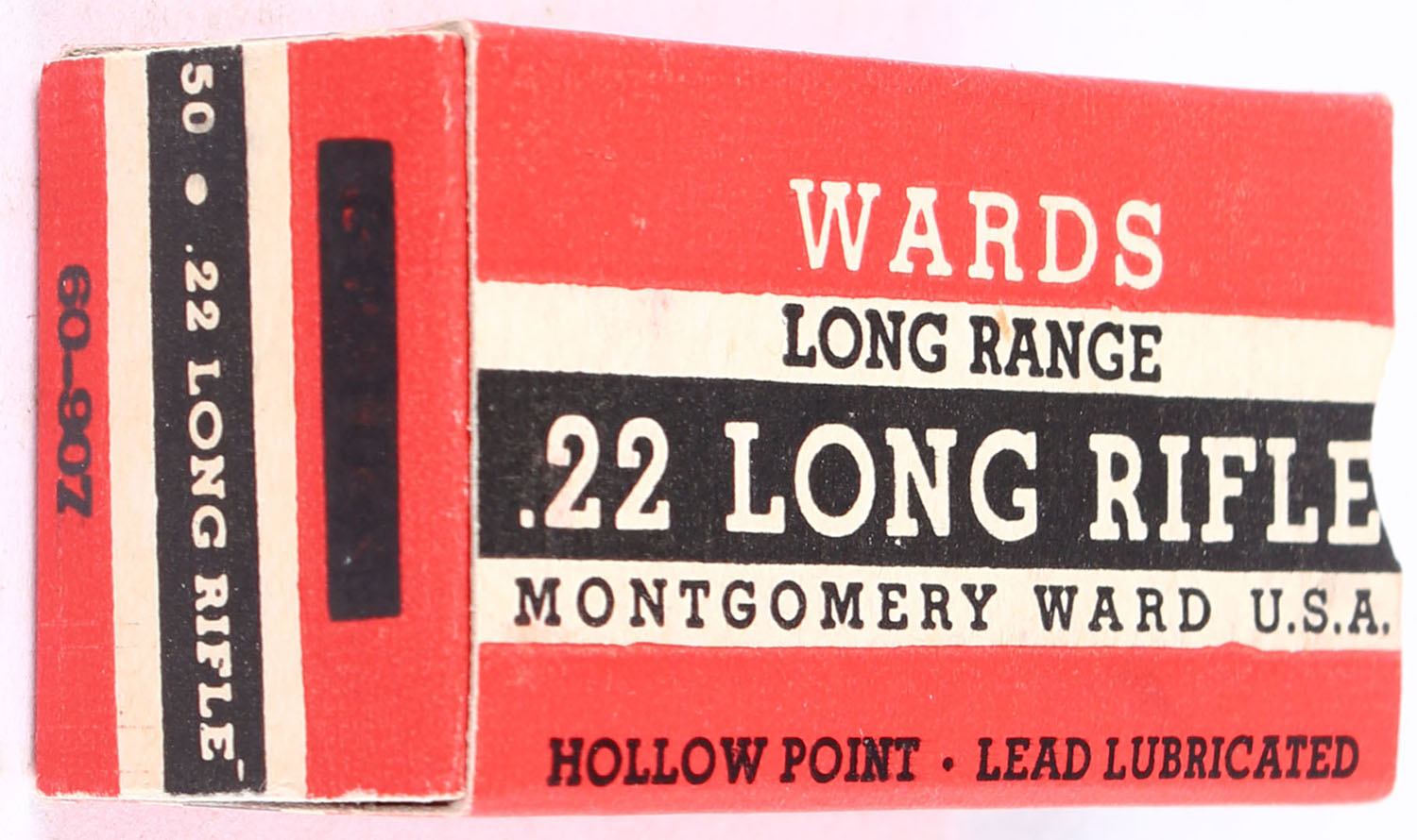Wards, Cleanfire, .22 Long Rifle Hollow Point, Lead Lubricated, RHWeb: MW-4B LR-2e (Blacked out product code), Full, 1pc. Red buff & black box, box is solid with excellent to minty color, very minor shelf wear, corners are mostly sharp, edges are crisp, end flaps are solid, ammo is minty. Grade: Excellent ++ - Value: 20 to 30