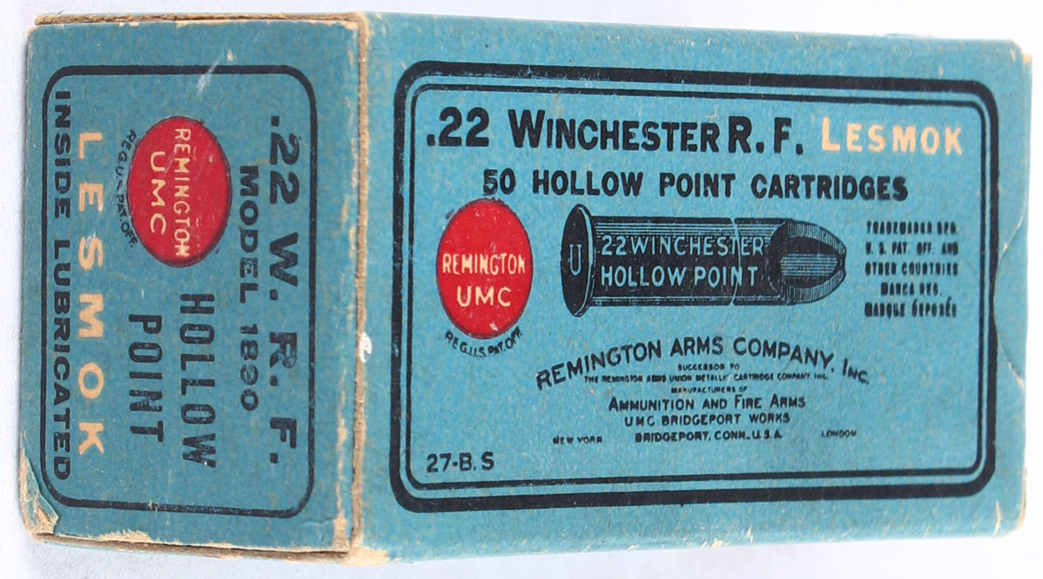 | REM-UMC, R.F. Lesmok Cartridges, .22 W.R.F. Hollow Point, RHWeb:...