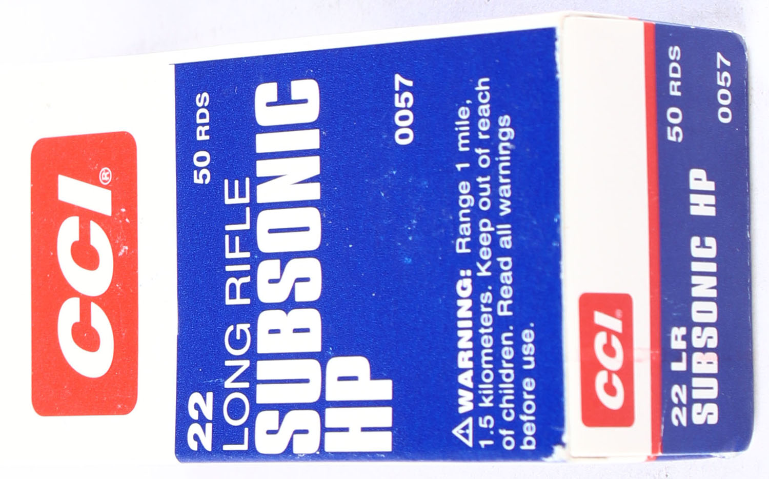 CCi, SUBSONIC HP, .22 Long Rifle, Full, 1pc. box is solid with excellent color, top flap is solid, ammo is minty. Grade: Excellent - Value: 6 to 20