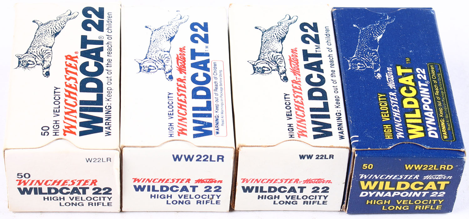 Winchester, Lot of (4) boxes, (1) box is full of incorrect ammo, all appear full. Grade: Excellent - Value: 40 to 60