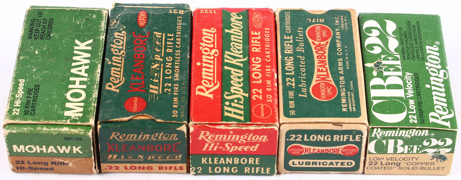 Remington, Lot of (5) boxes, all appear full, (1) box is full of mixed ammo. Grade: Very Good ++ - Value: 20 to 50