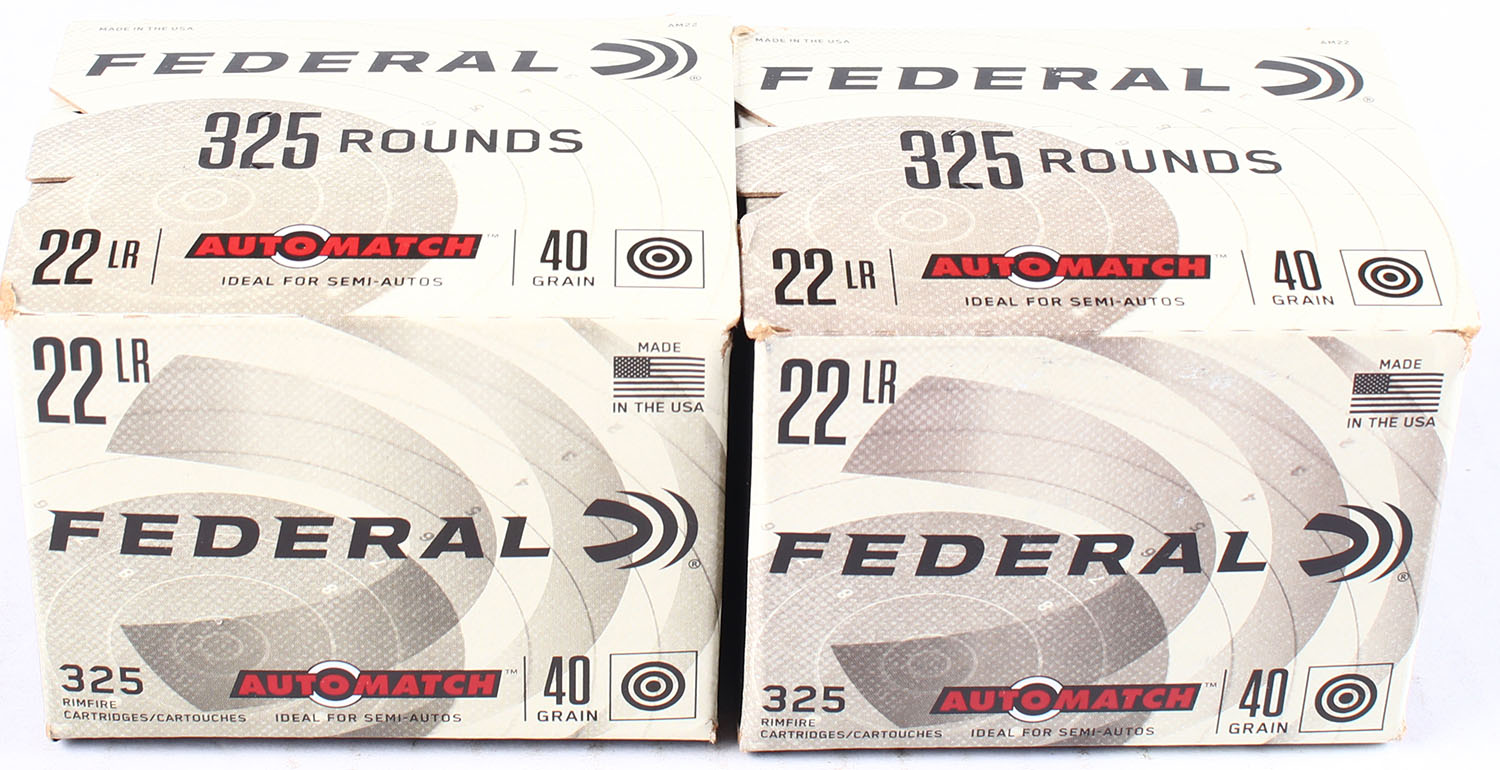 Federal, Lot of (2), AutoMatch, .22 Long Rifle, Ideal for Semi-Autos, 40 Grain Solid, 1200 FPS, FULL & SEALED 650 rds. 1pc. Tan & black bulk box, box is MINT with minty color, corners are mostly sharp, edges are crisp. Grade: MINT - Value: 20 to 50