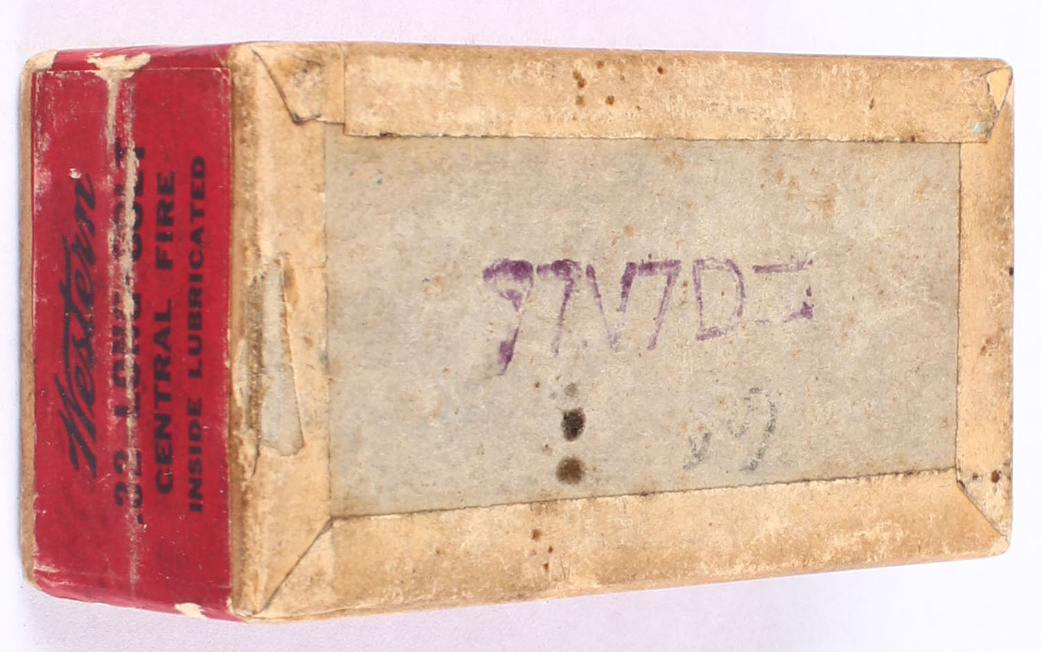 Western, Central Fire Cartridges, .32 Cal. Long Colt, Nublend Powder, 82 Grain Bullet, FULL & SEALED, 2pc., Buff box with green top & red side sealing labels, box has some age soiling with rub marks, corners are sharp, labels are intact. Grade: Excellent - Value: 80 to 120