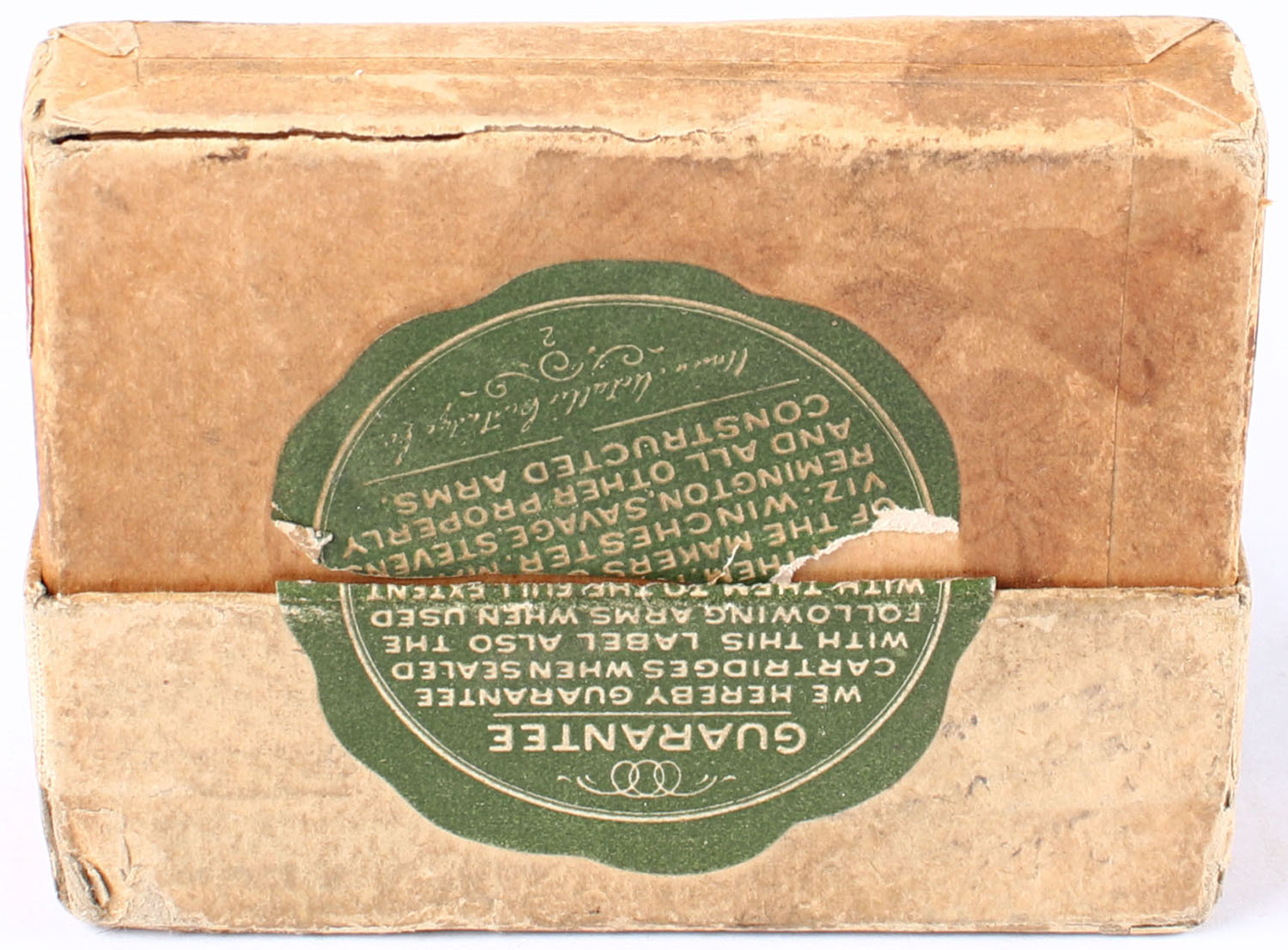 UMC, Center-Fire Cartridges, .25-25 Cal., Full, 2pc. tan box with green top & side labels, box is solid with some scuffing, ammo is excellent. Grade: Very Good ++ - Value: 50 to 150