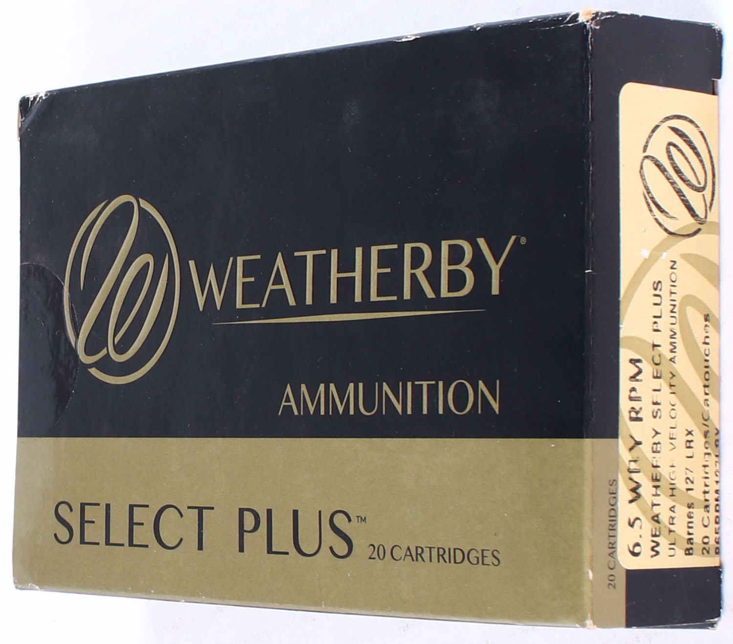 Weatherby Select Plus, Ultra-High Velocity Ammunition, 6.5 Wby RPM, Barnes 127 LRX, Full & SEALED, 1pc. Multi-colored box, box is solid with excellent color. Grade: Excellent ++ - Value: 40 to 100