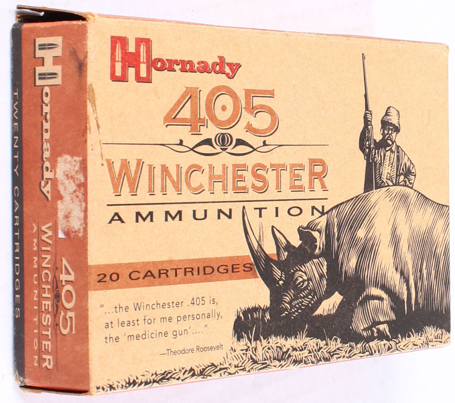 Hornady, .405 Win, 300 Grain Flat Point, 2225 FPS, Full, 1pc. box is solid with excellent color, end flaps are solid, ammo is excellent. Grade: Excellent - Value: 40 to 80