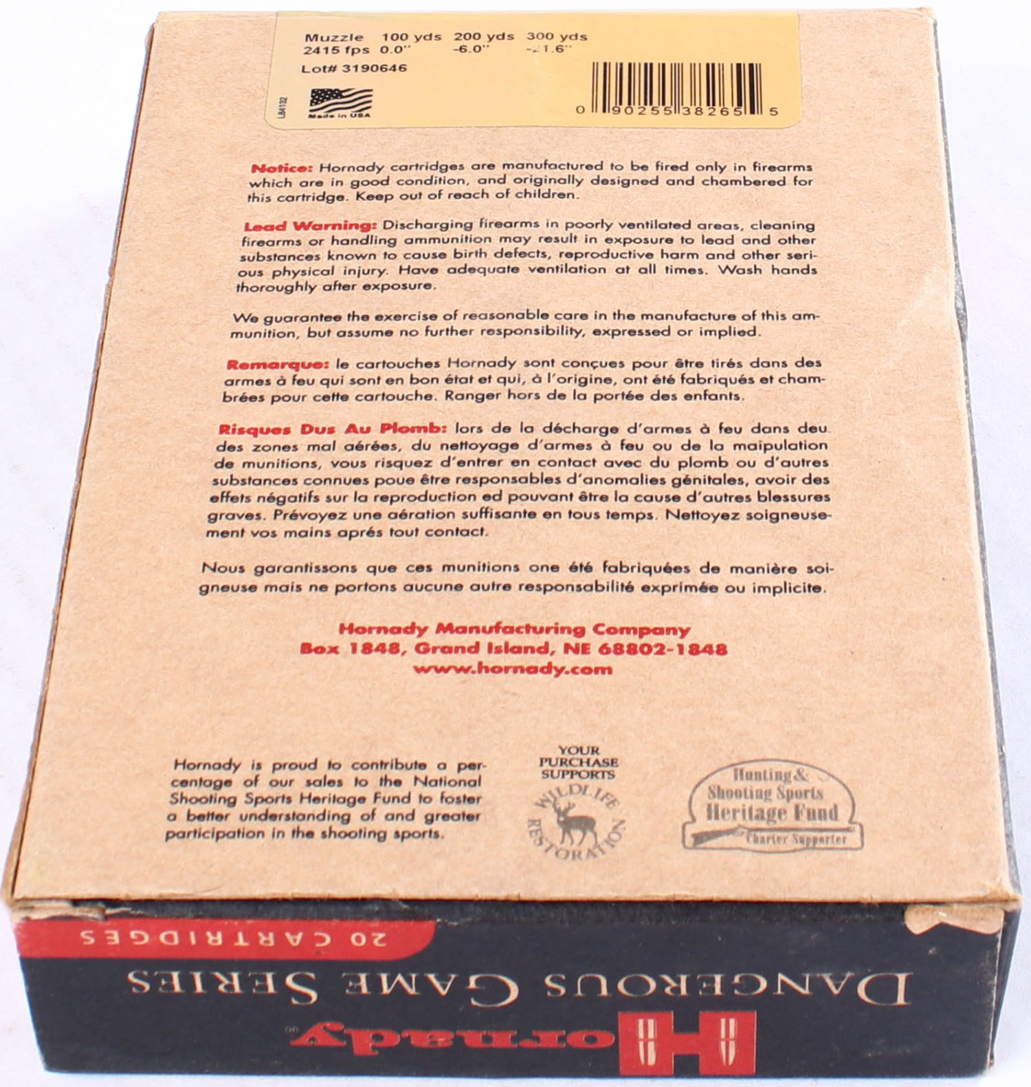 Hornady Dangerous Game Series, .416 Rigby, 400 Grain DGS, Full, 1pc. multi-colored box, box is solid with excellent color, Ammo is minty. Grade: Excellent ++ - Value: 40 to 80