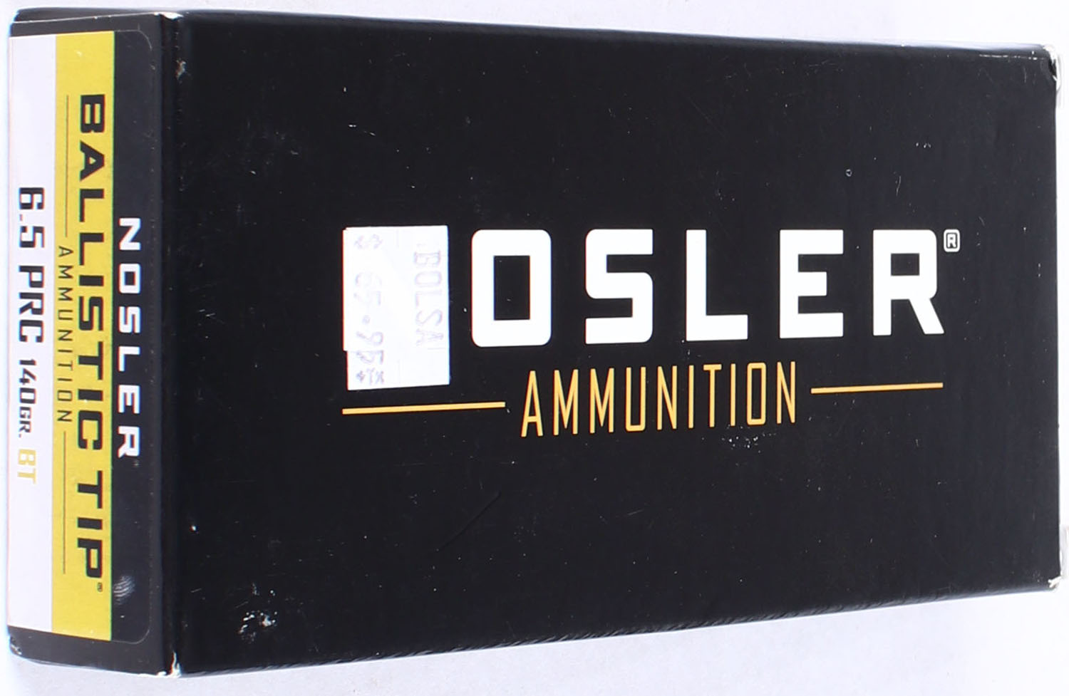 Nosler, Ballistic Tip, 6.5 PRC, 140 Grain BT, Full, 1pc. multi-colored box, box is solid with excellent color, Ammo is excellent. Grade: MINT - Value: 30 to 60