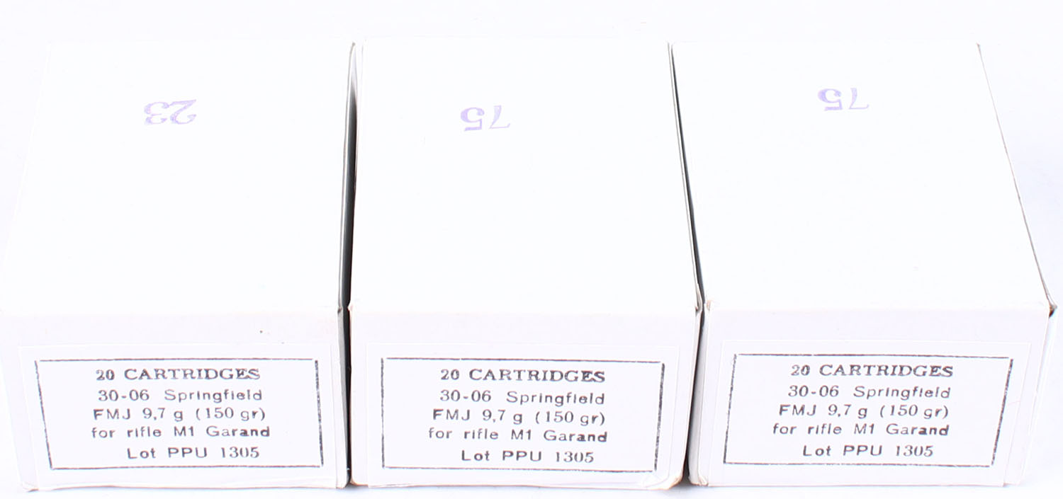 Unknown Mfg., Lot of (3), .30-06 Springfield, 150 Grain FMJ, FULL & SEALED (60rds), White boxes with white & black sealing label, boxes are very solid. Grade: Excellent ++ - Value: 20 to 30