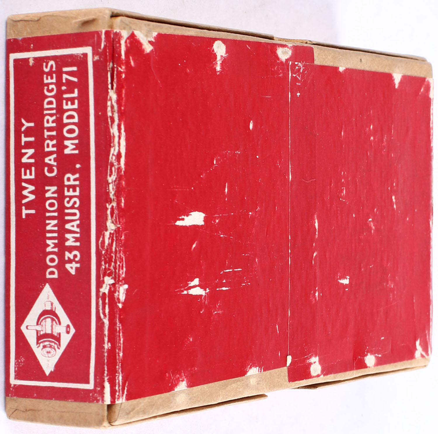Dominion Cartridge Co., .43 Mauser Black, Full & Sealed, 2pc, buff box with red and white label, box is very clean with minor wear, light scuffing to bottom label. Grade: Very Good ++ - Value: 40 to 100