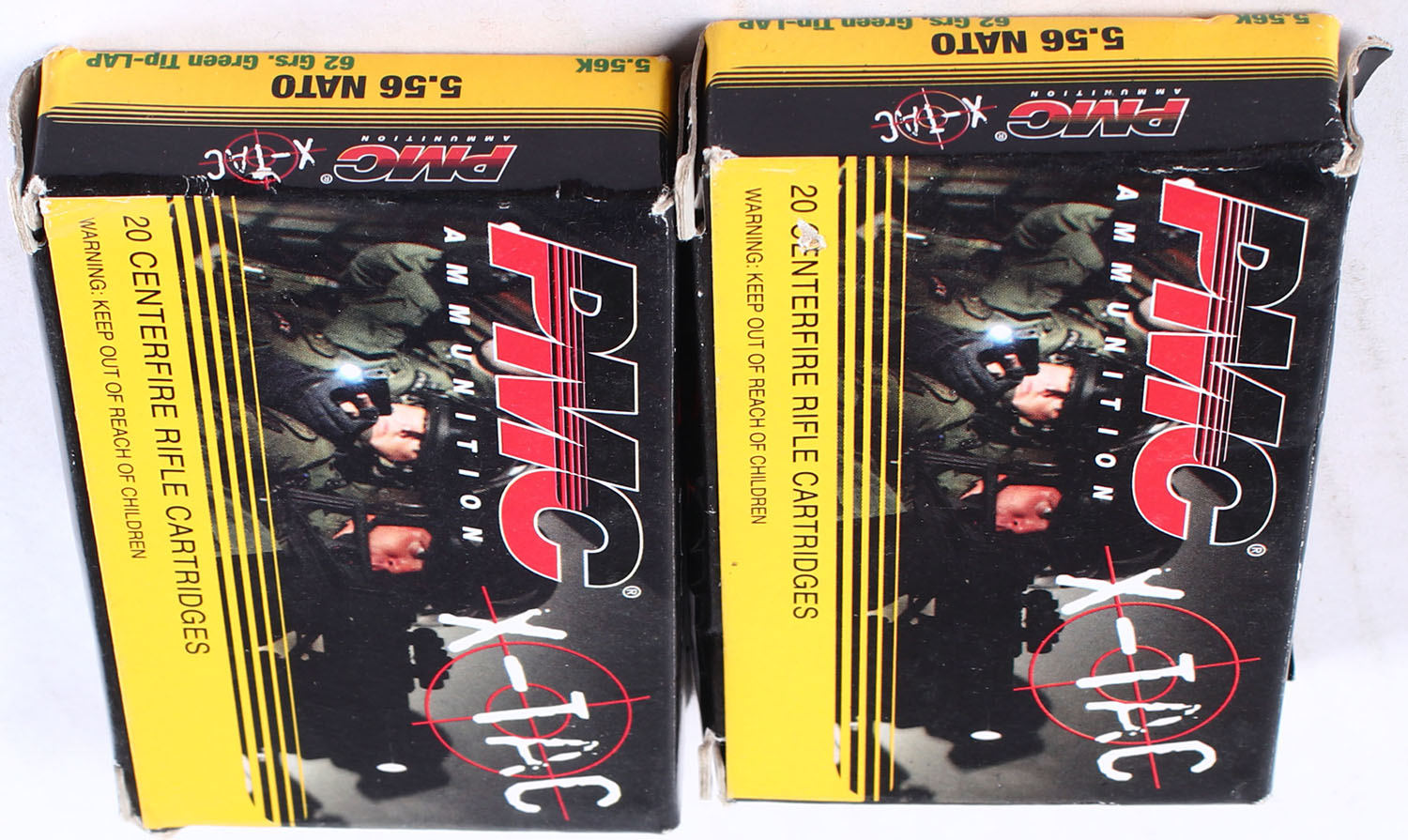 PMC, Lot of (2), X-Tac, 5.56 Nato, 62 Grain, Full, 1pc., multi-colored boxes, boxes are solid with corner wear, Ammo is excellent. Grade: Very Good - Value: 14 to 21
