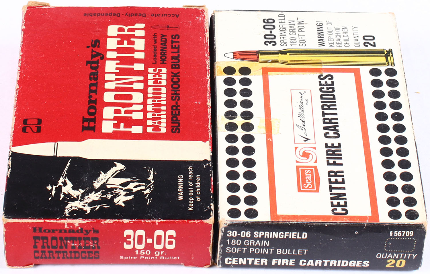Mixed Mfg., Lot of (2) 30-06 Springfield, boxes are FULL, have edge & corner wear, ammo is good to very good. Grade: Very Good - Value: 16 to 30