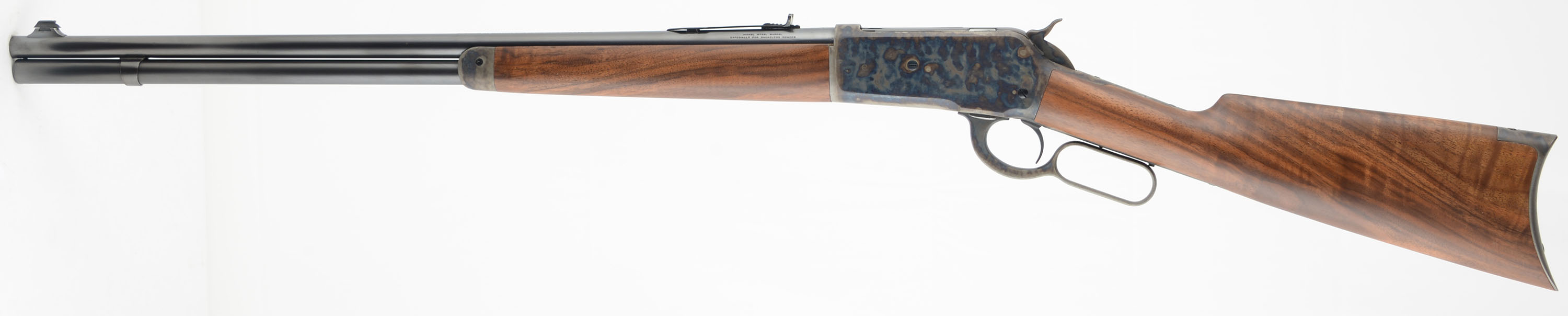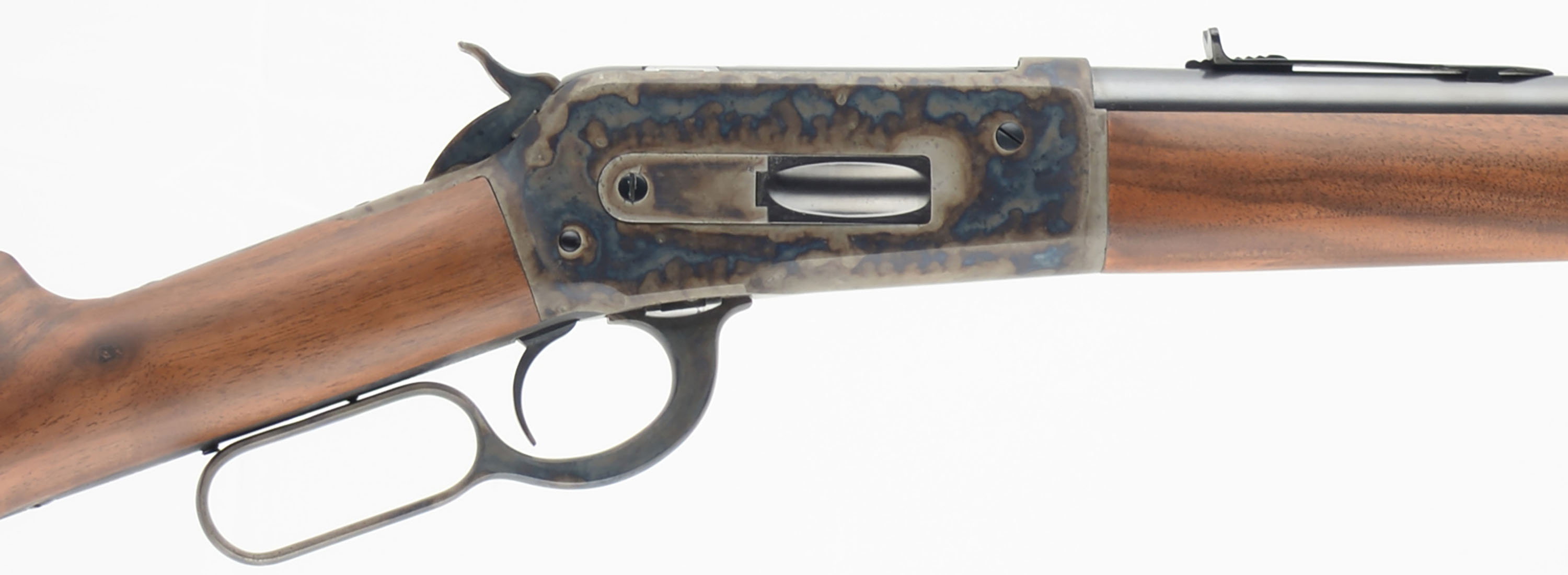 Winchester, Model 1886, .33 W.C.F., MFG. 1903, SN: 131040, Lever Action Rifle, 24'' Round barrel, Full mag. This rifle has been fully & professionally restored to overall excellent. The straight grip wood stocks are minty, with virtually no handling marks to the excellent finish. The wood displays very nice upgraded layered grain. The metal blue finish on the barrel & mag rates 99%, with a couple of small areas of cleaned light pitting und blue on the barrel. The case-hardened receiver, lever, forend cap, buttplate & hammer all display fantastic case-colors. The sliding bolt retains a full 98% blue. The barrel is fitted with an adjustable rear sight & a raised elongated blade front sight. Bore is very good, with some cleaned roughness amongst strong rifling. Stock carries a crescent metal buttplate. A sharp looking & expertly restored 1886. FFL or C&R Req.. - Value: 1500 to 3000