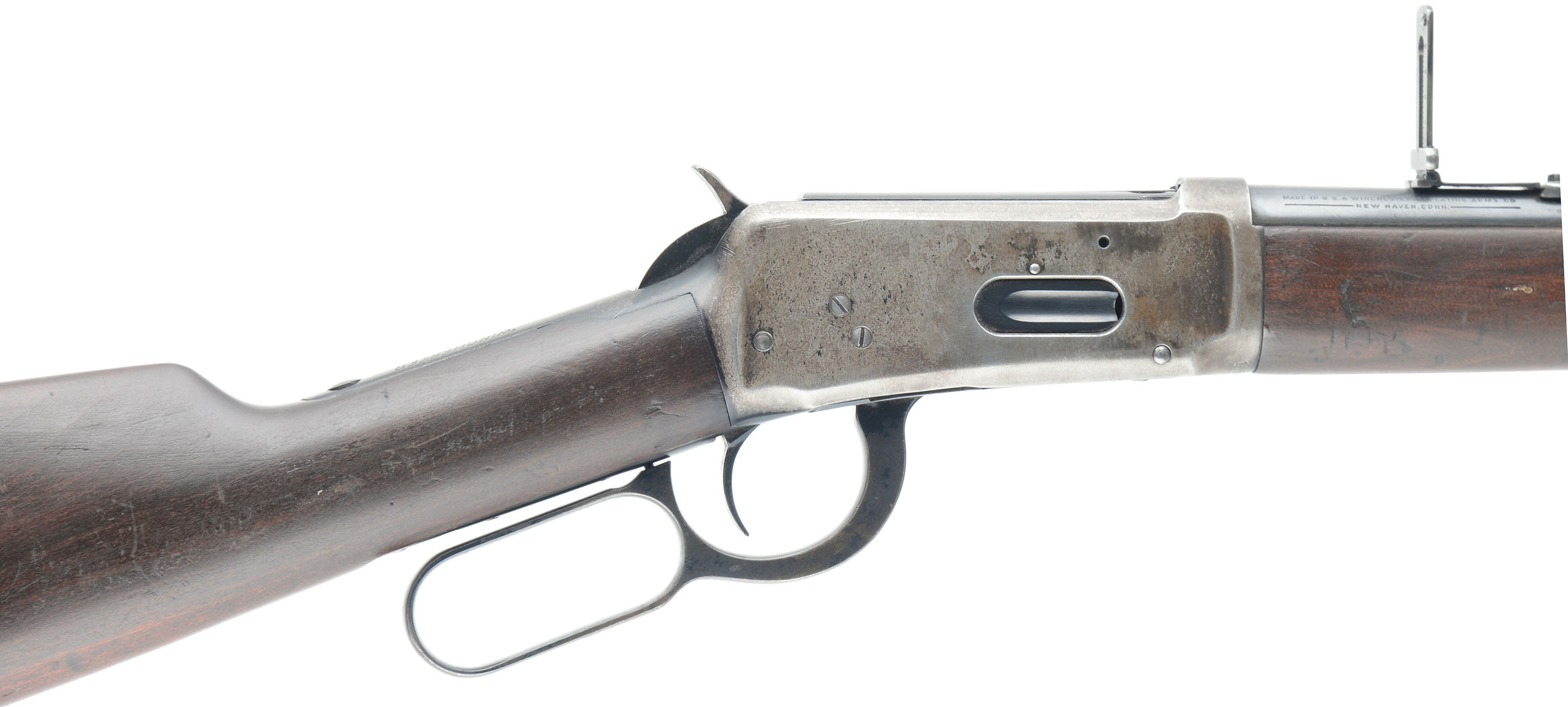 Winchester, Model 94 Carbine, CAL: 30 WCF (30-30), MFG: 1929, SN: 1054731, Lever Action Carbine, 20'' Round Nickel Steel barrel, Full mag. The straight grip wood stocks are excellent, with several minor handling marks, scratches & contusions to the excellent original finish, which is thinning some on the belly of both the stock & forend. There is a couple of lightly scratched initials on the right back corner of the stock near the buttplate. The original metal blue finish rates 85% on the barrel & mag, while the receiver has worn gun metal gray on the right side, while the left side retains 50% blue. The hammer, lever, bolt & loading gate all retain the majority of original blue. Bore is excellent & bright. Fitted with a carbine ladder rear sight & carbine box front sight. Buttstock carries a smooth carbine metal buttplate. Smooth tight action. Overall, very nice & original carbine in a popular hunter's category. FFL or C&R Req. - Value: 1200 to 2000